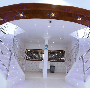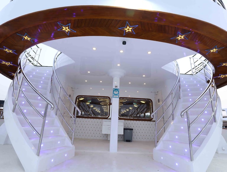 Third / Top Deck – A wide-open space with a 365° panoramic view, perfect for sunset cruises, live entertainment, and starlit dinners.